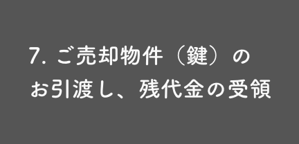 買主様へのお引渡しの準備(お引越し、抵当権の抹消手続き等)をしていただき、固定資産税等の精算を行い、 残代金を受領します。